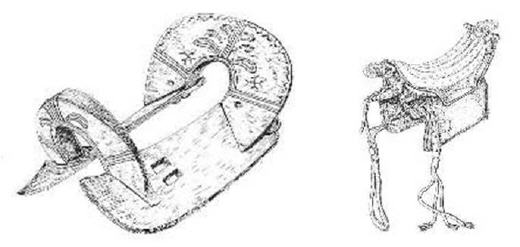 Der Sattel war also vermutlich mit zwei kleineren Galerien versehen, die Sattelbretter im Bogen verzapft, optisch muß man sich also einen kurzen Sattel vom heutigen iberischen Typ vorstellen.