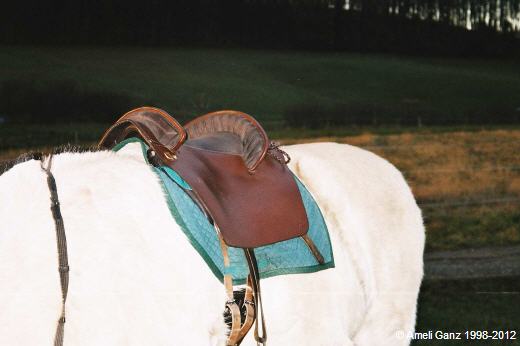Nachdem mein Pferd Janosch auf einen anderen Hof und damit in ein etwas steileres Gelände umgezogen ist, veränderte sich auch seine Muskulatur. Der mir lieb gewordene Distanzsattel vom Typ Marathippo II paßt gerade bei Winterpelz nicht mehr optimal. Da er bereits aufgepolstert wurde, ergeben sich außer einer dickeren Unterlage nicht mehr viele Möglichkeiten der Anpassung. Also muß ich über einen neuen Sattel nachdenken und wenn ich schon Geld „in die Hand nehme“, warum dann nicht ein historischer Satteltyp?